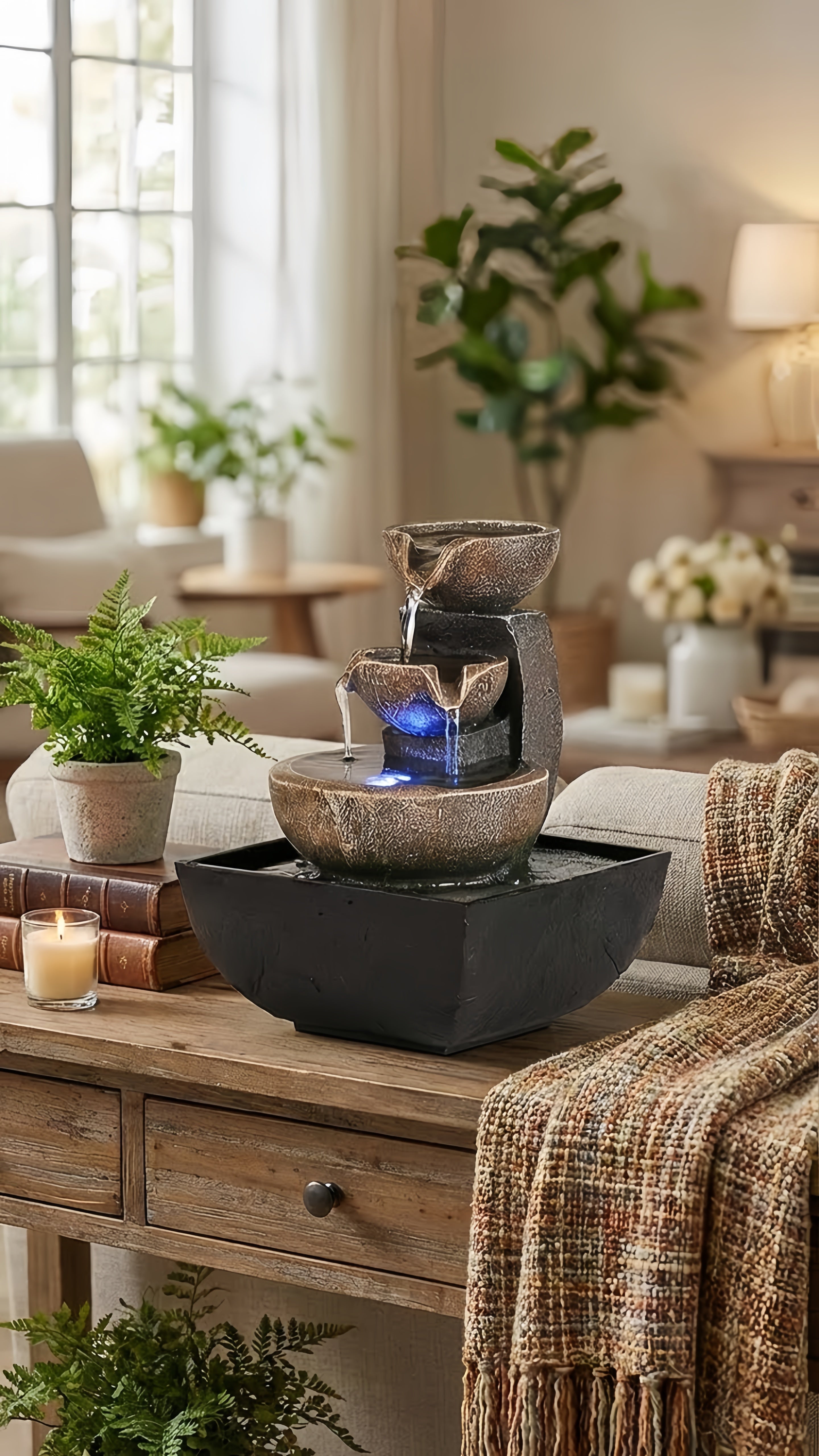 Au-delà de son esthétique, notre fontaine est un puissant outil anti-stress. Elle améliore la concentration, favorise un sommeil réparateur et harmonise votre environnement selon les principes du feng shui. C'est bien plus qu'une simple décoration, c'est un investissement dans votre paix intérieure.